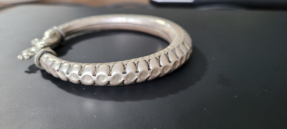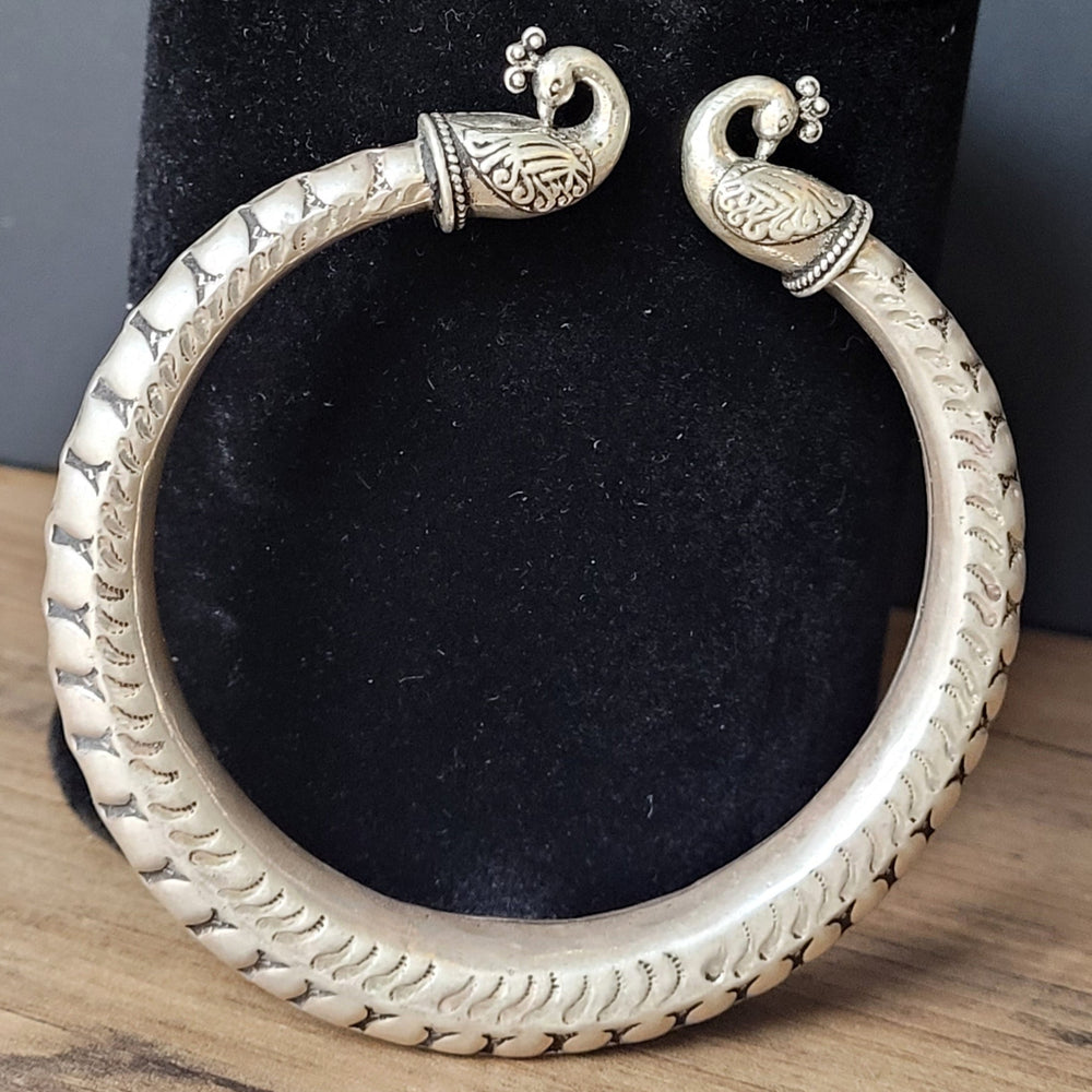 Elegant Oxidized silver open concept bold KADA peacock designed for any occasion gives marvellous look on Rajwadi piece.