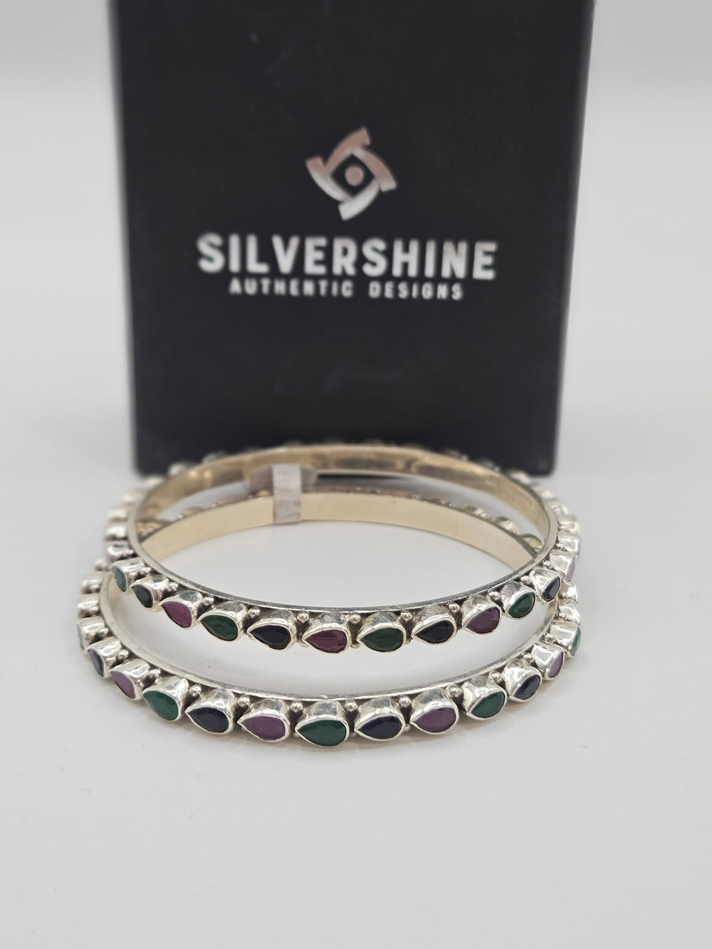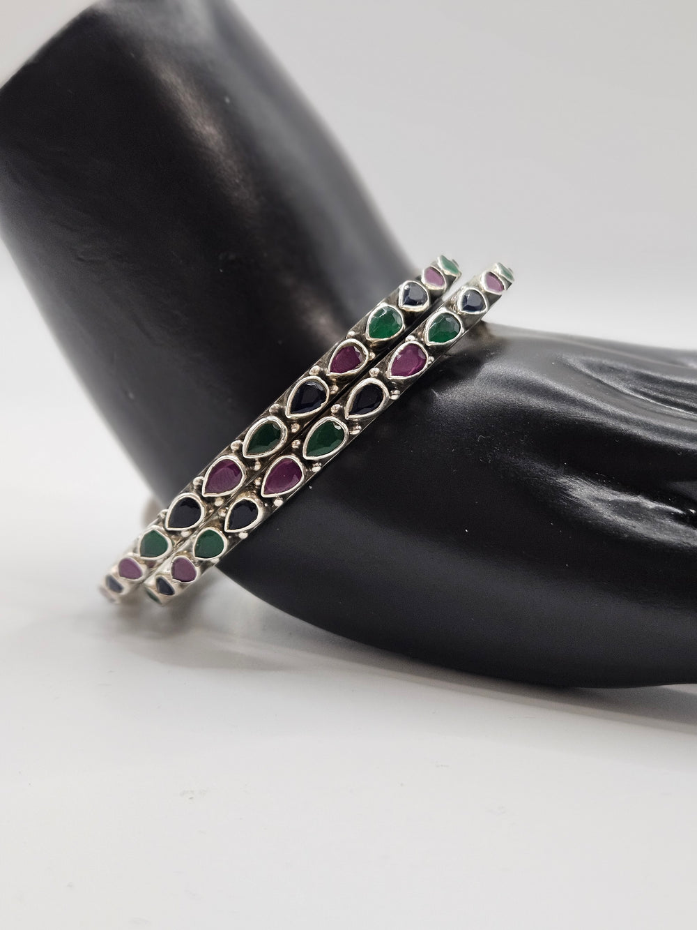 Elegant Statement Oxidized silver 2 bangles in pair with Semi precious Ruby, emerald ,black Stones