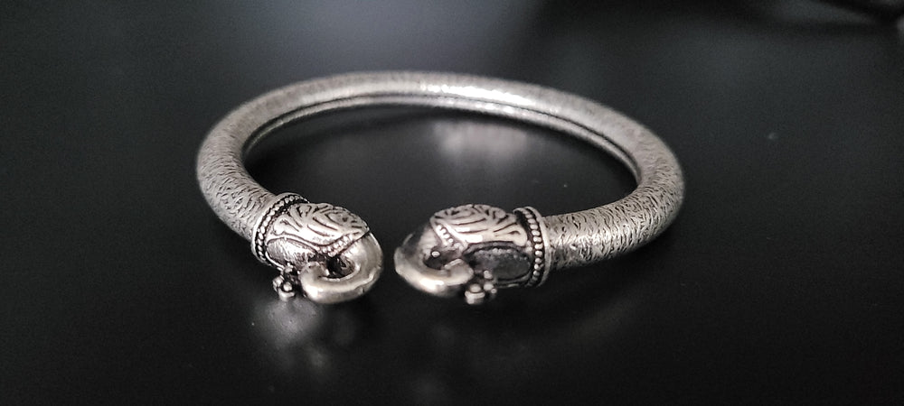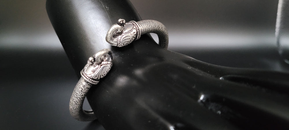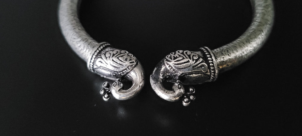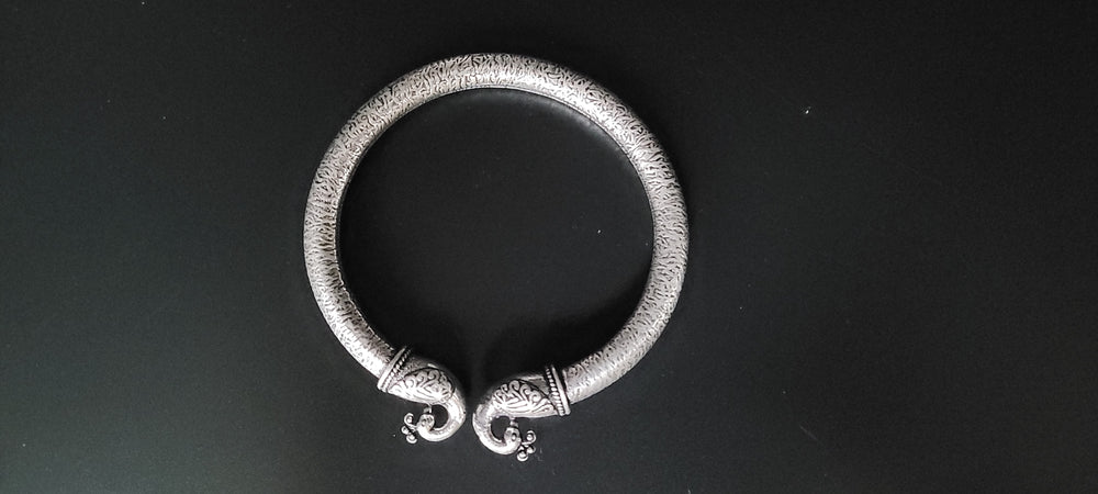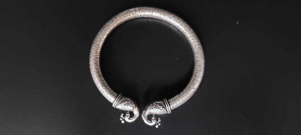 Elegant Oxidized silver open concept bold KADA peacock designed for any occasion gives marvellous look on Rajwadi piece.