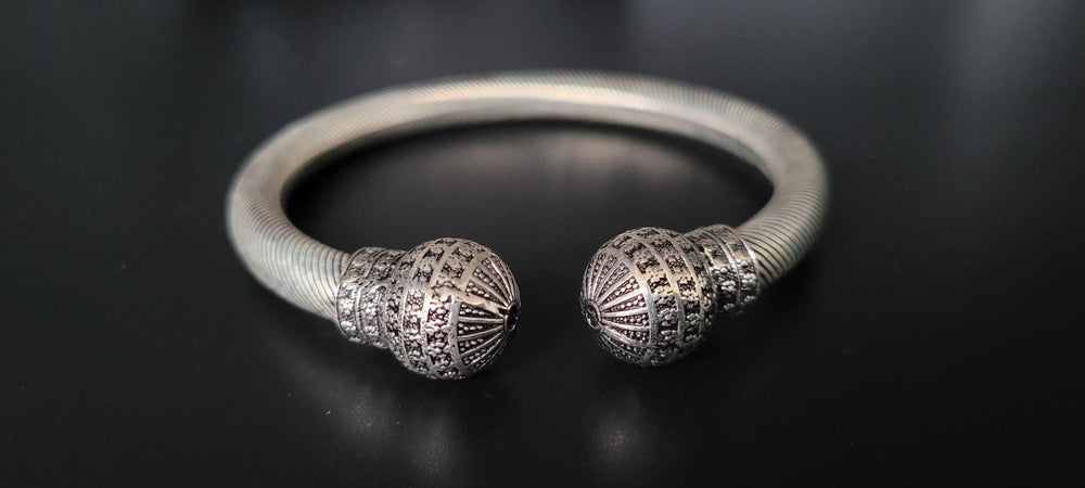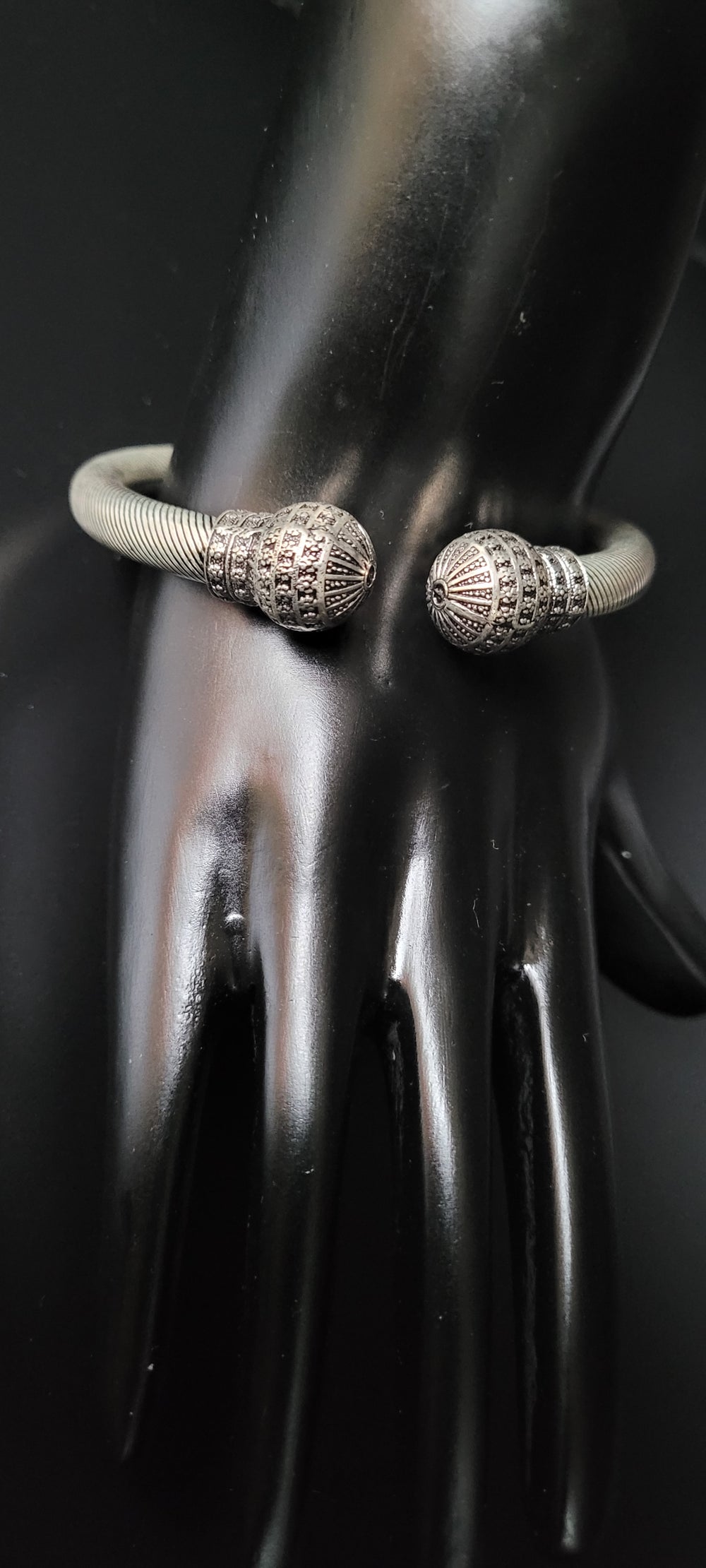 Elegant Oxidized silver open concept bold KADA peacock designed for any occasion gives marvellous look on Rajwadi piece.