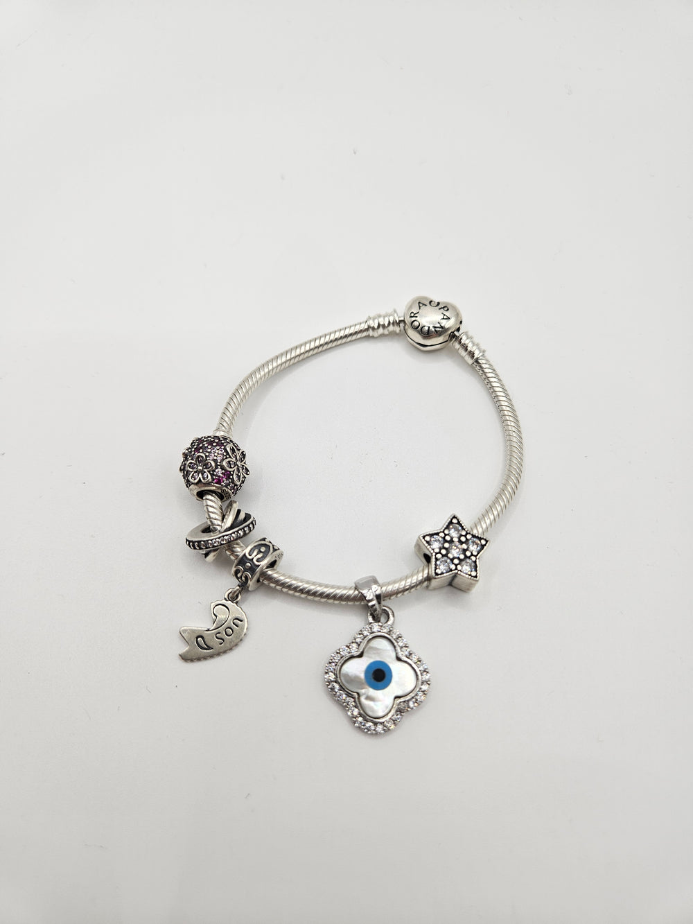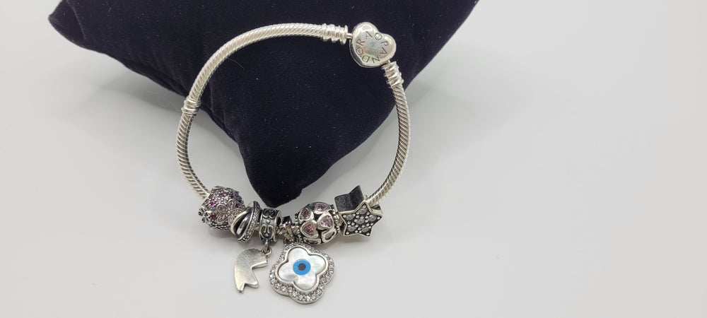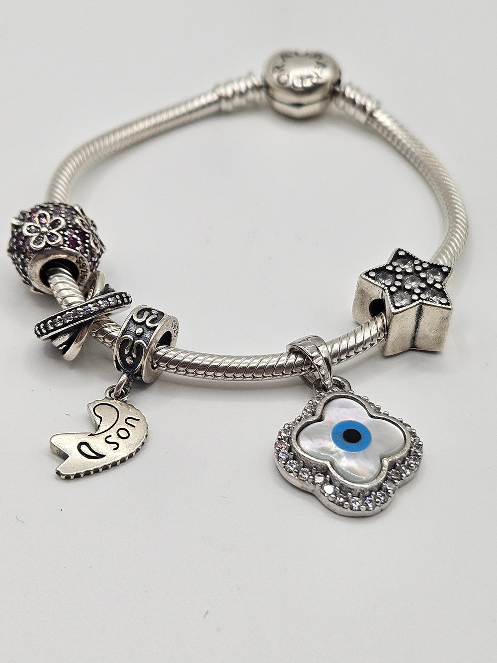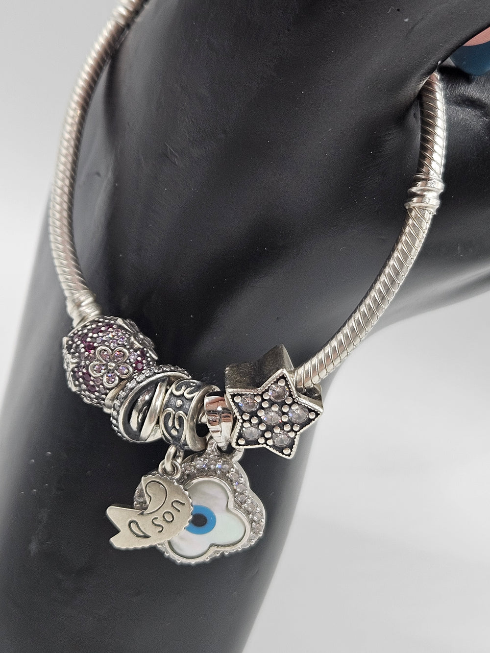Silver Designer Pandora Charms & hangings zircons diamonds Bracelet.