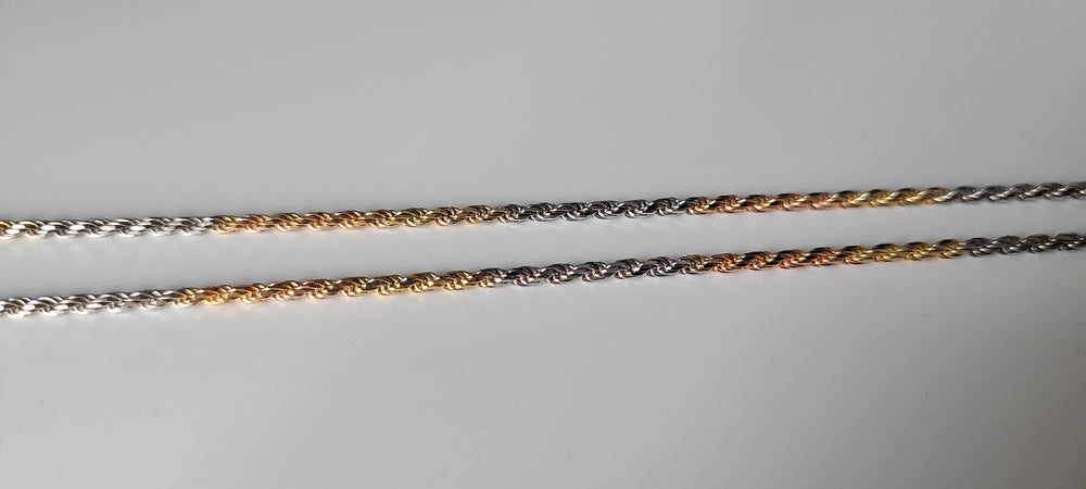 925 Sterling Silver Mix color plated thin Rope chain for girls and women.