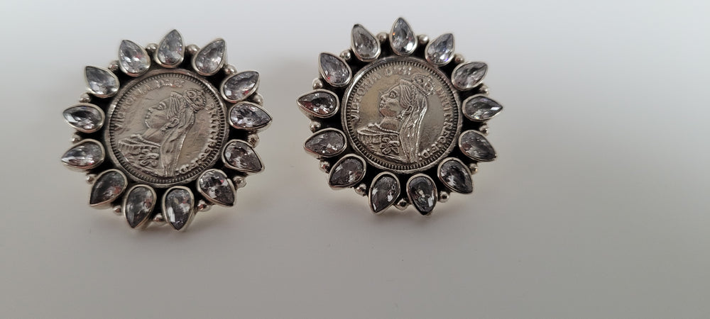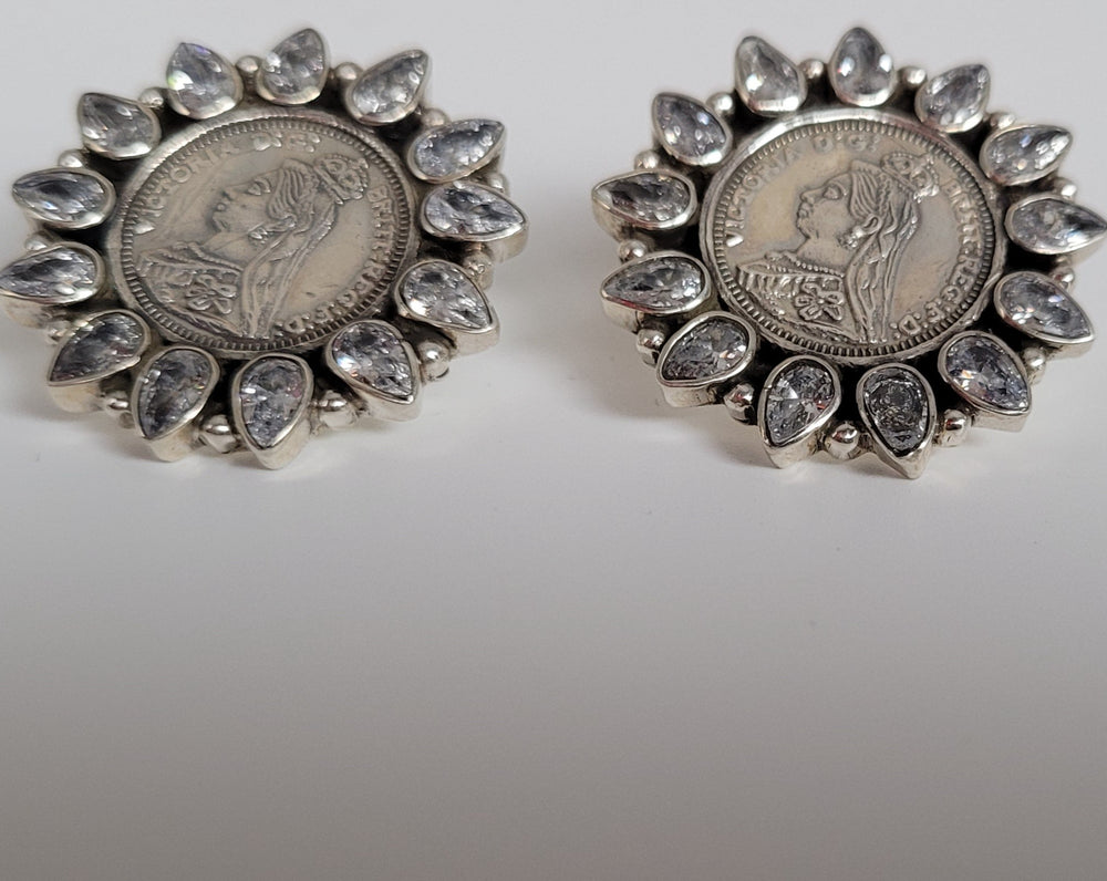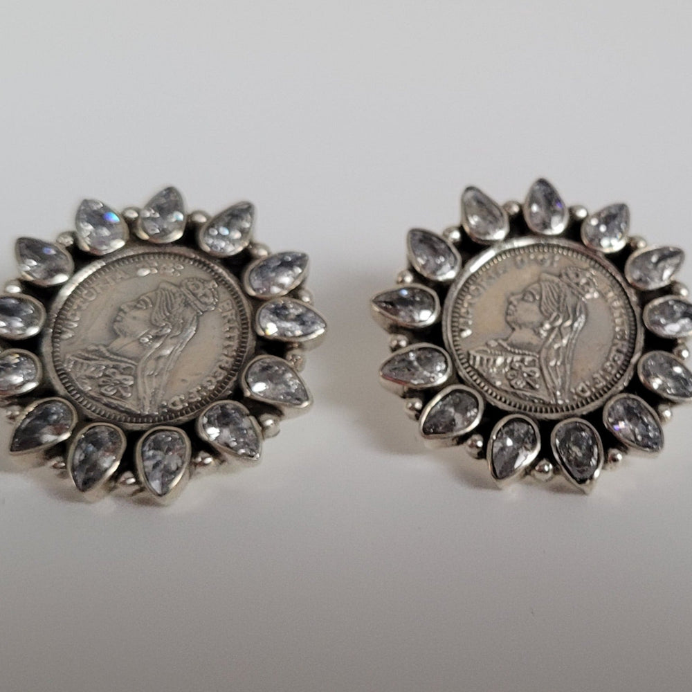 Elegant Statement Silver Small designer white stones earring