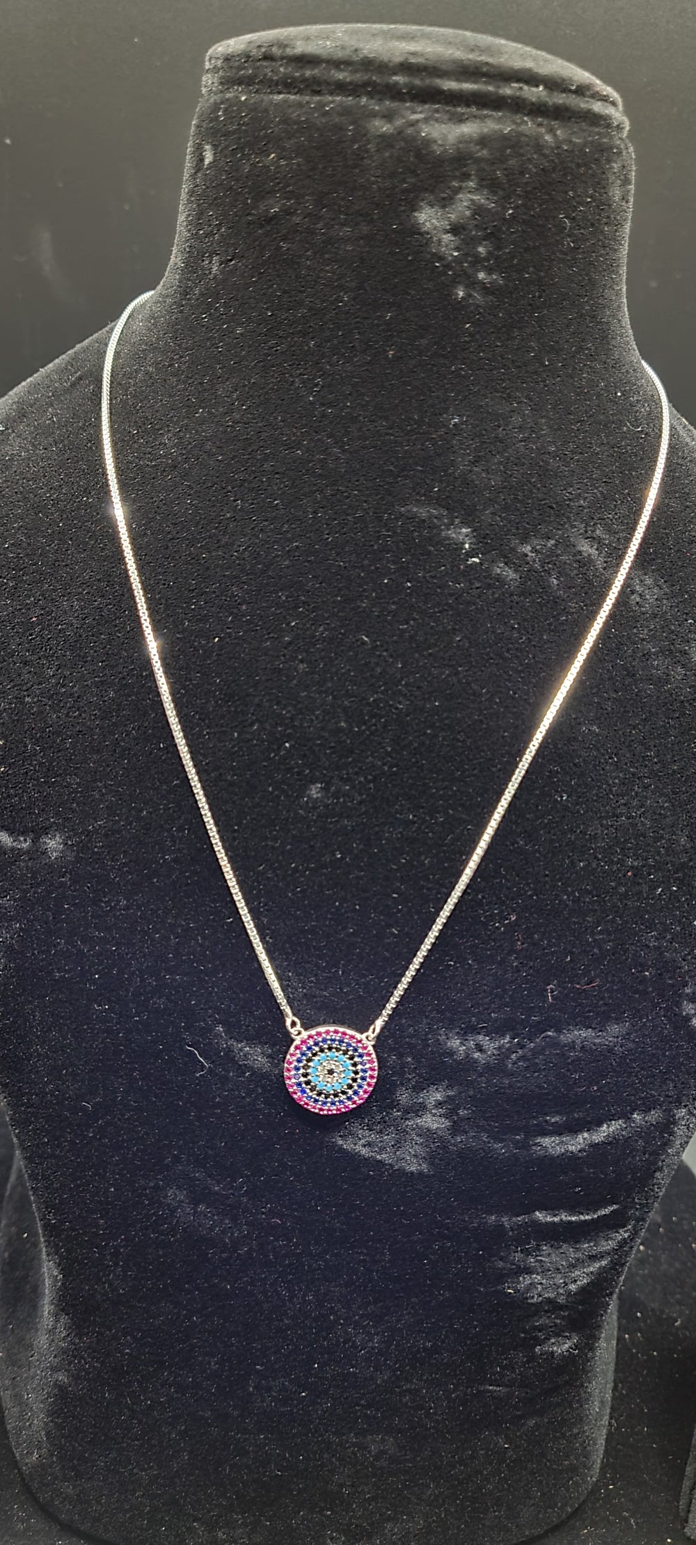 925 Sterling Silver chain with designer multi color small zircon pendant perfect for girls and women.