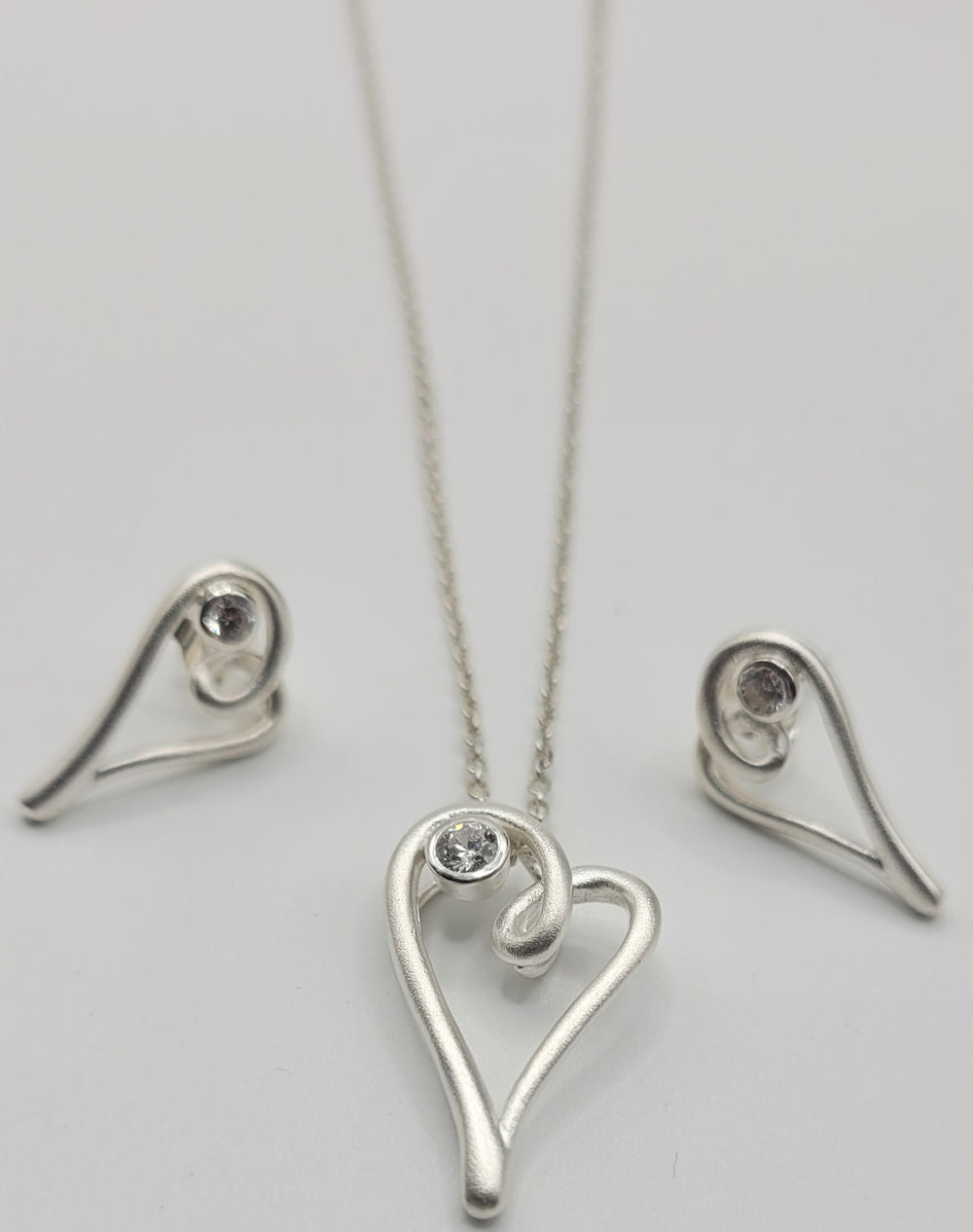 925 Sterling Silver Chain heart with 1 stone Pendant sets perfect for girls and women.