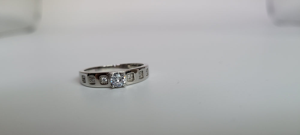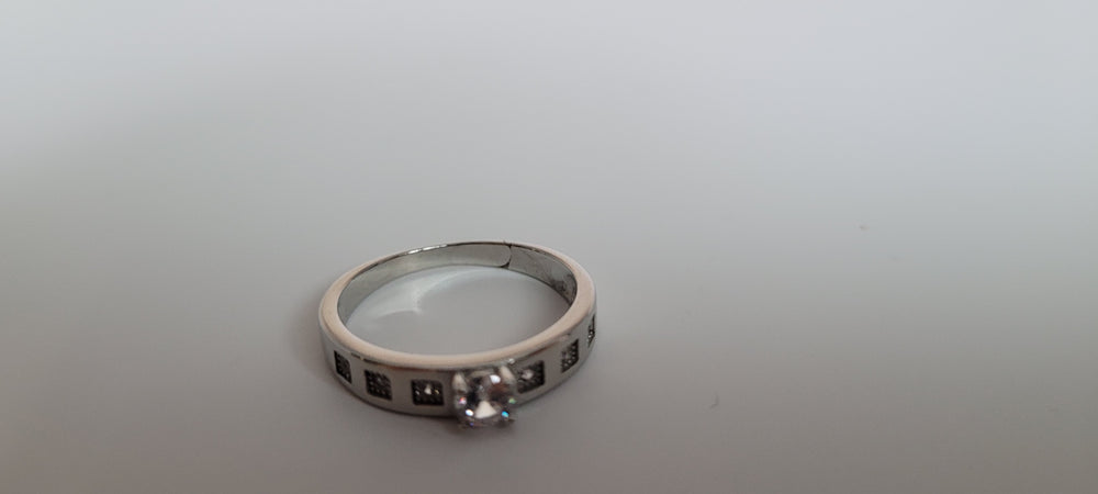Elegant Silver Single white stone & 3 square diamonds surround.