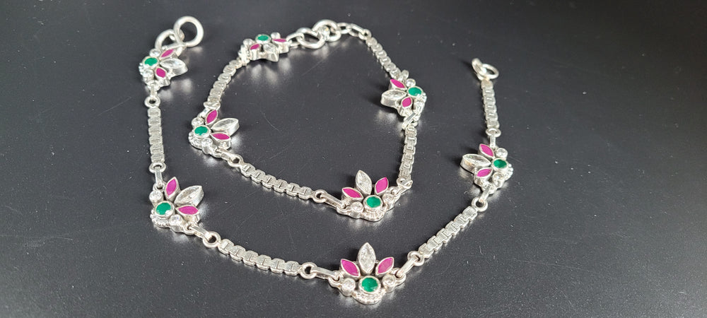 925 silver Multi Stone ( Ruby stone, Green stone, White zircon) designer Oxidized Statement piece for any occasion.
