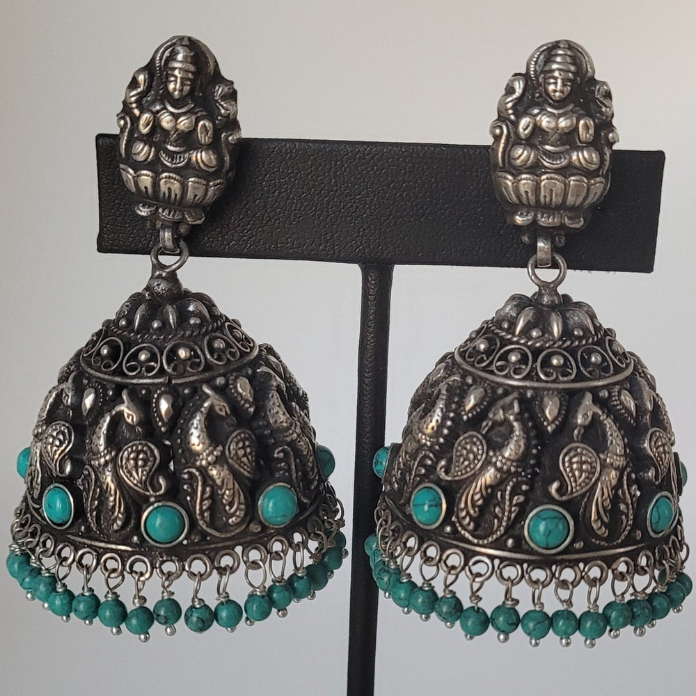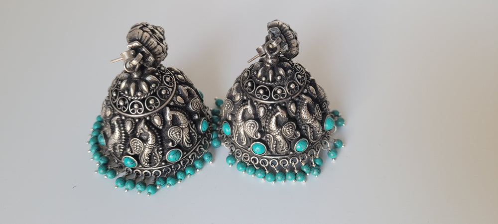 Elegant Oxidized Silver Large Blue stone designer earrings