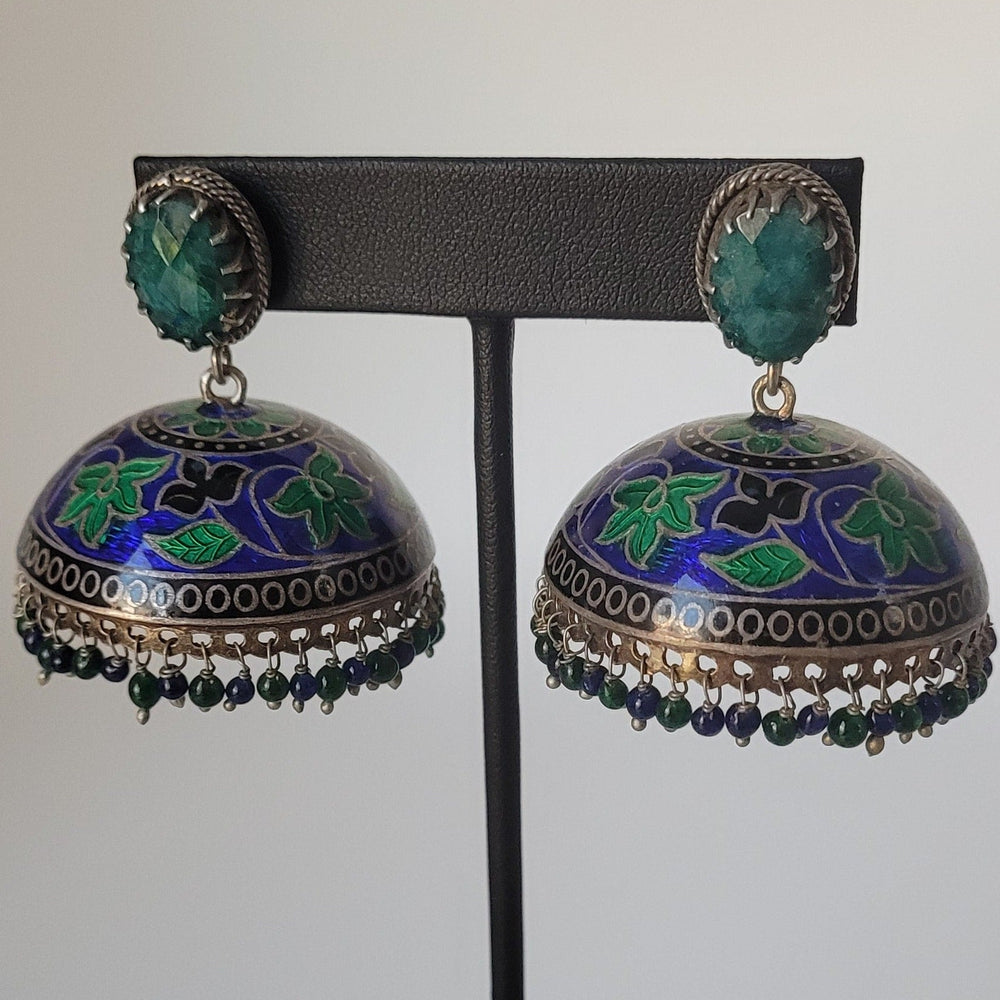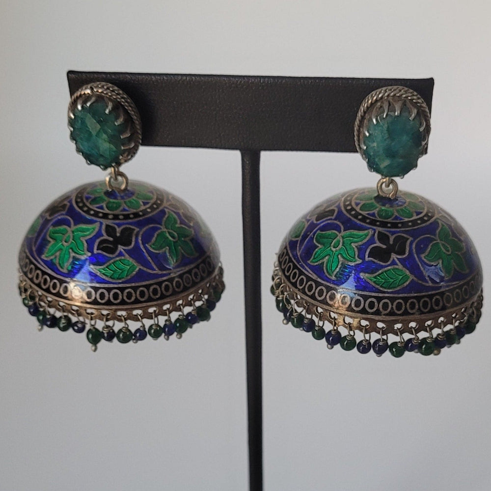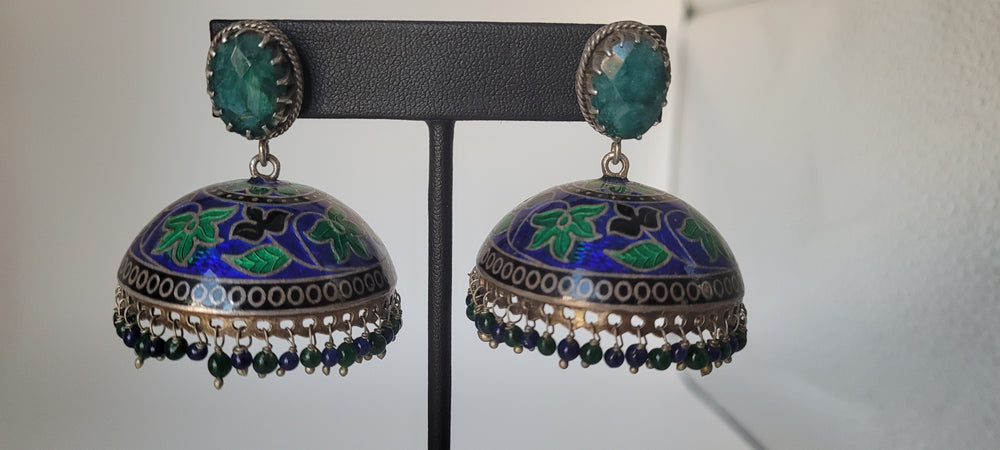 Elegant Oxidized Silver Medium Multicolor Meena Jhumkas