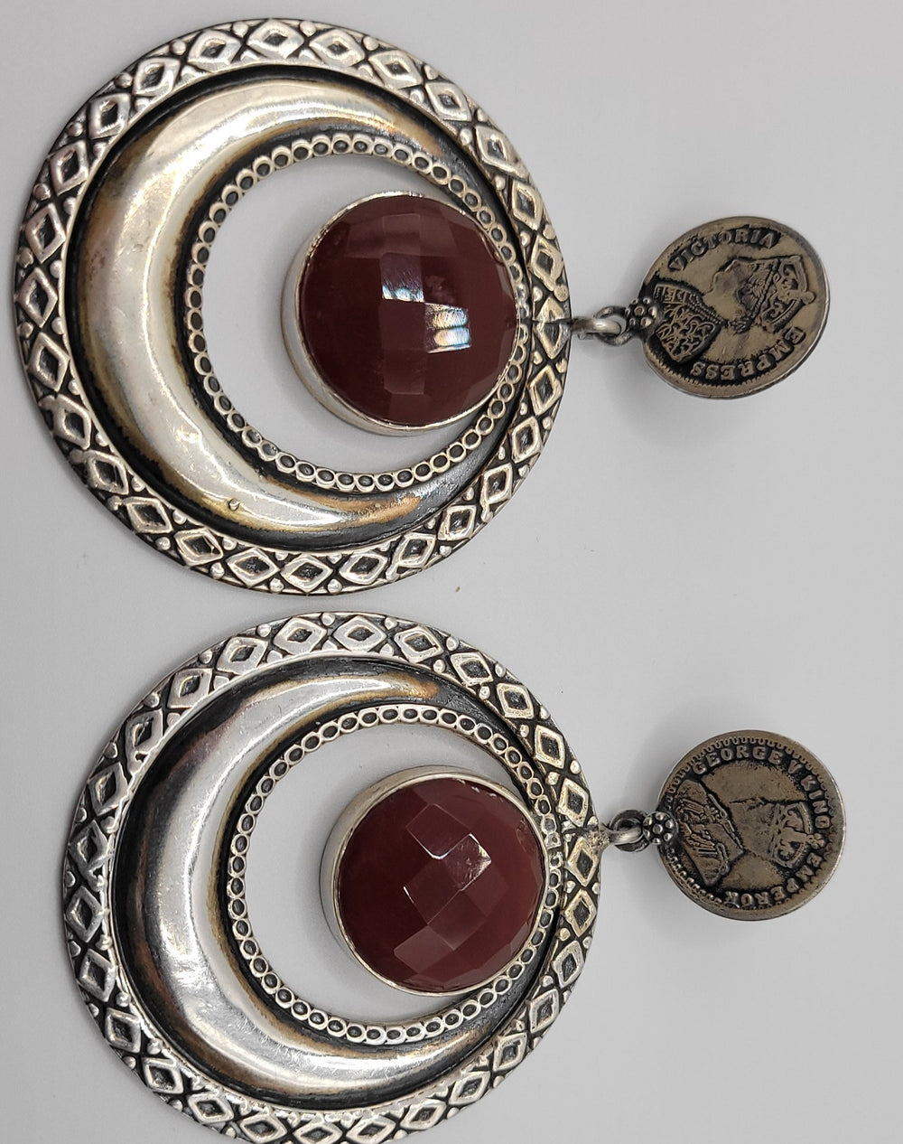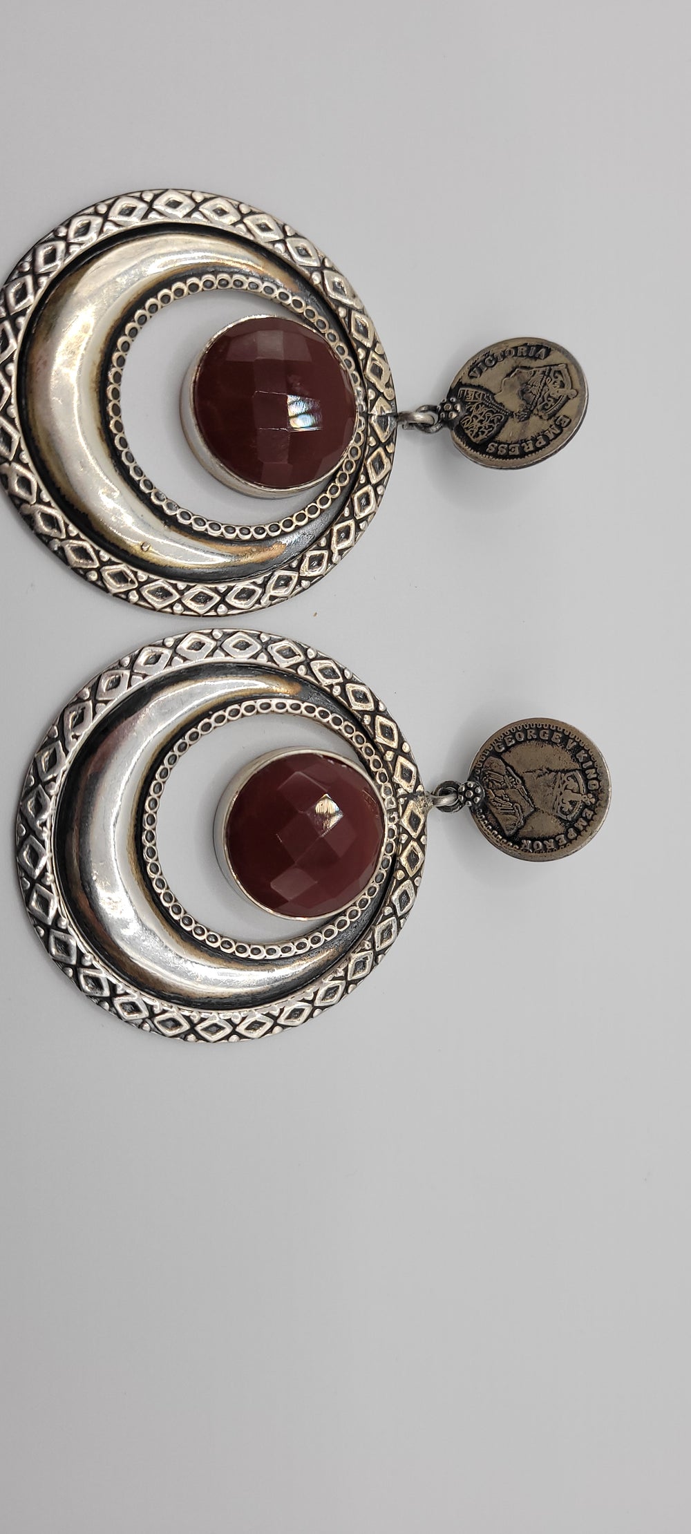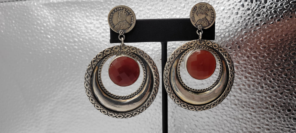 Elegant Oxidized Silver Medium Brown stone Earrings
