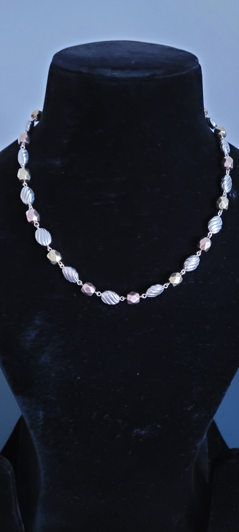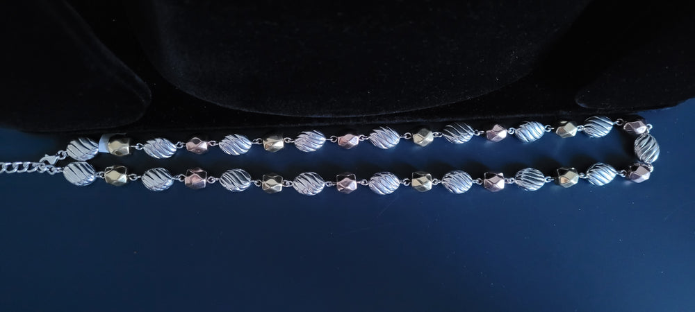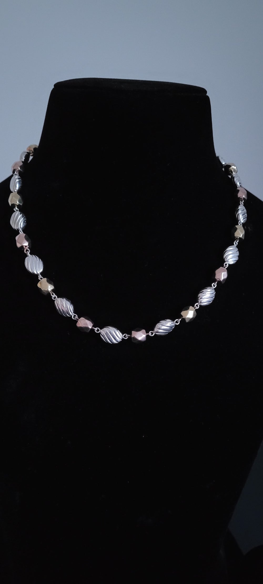 Hand crafted in 925 Sterling silver with Tri color( Rosegold, Gold, Silver) polished design gives a graceful look to neck piece.