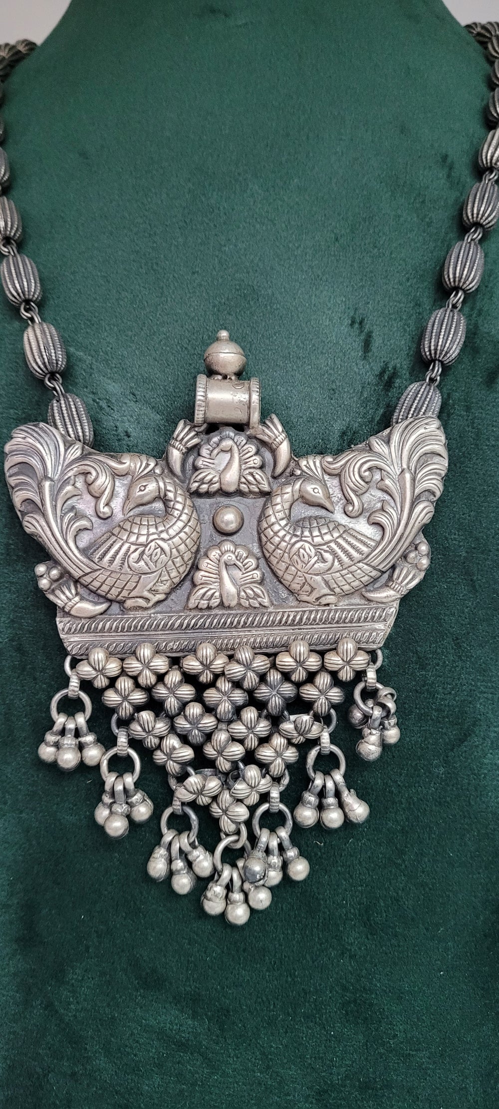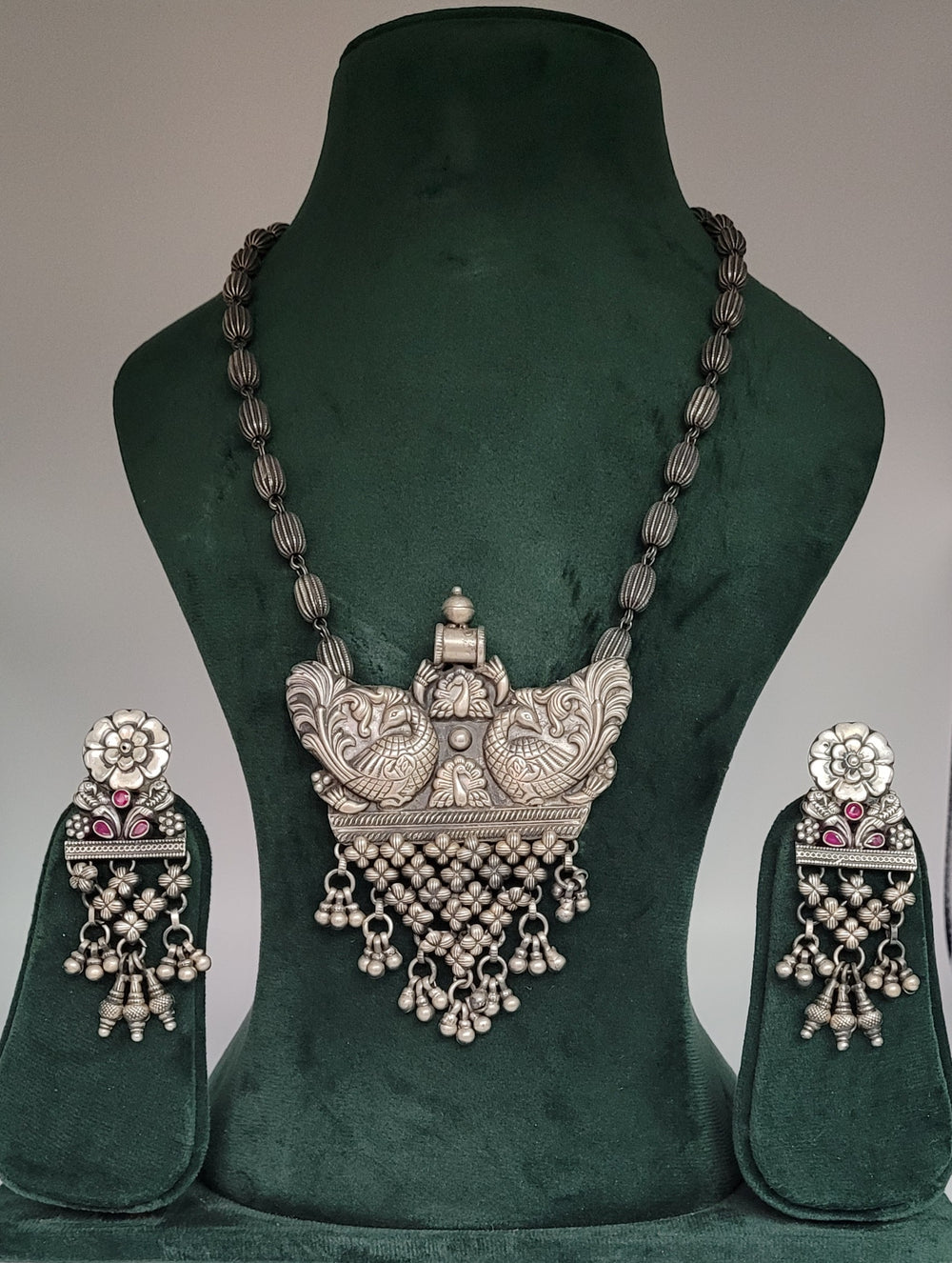 Hand crafted in Sterling Oxidized Temple finish gives a graceful look to neck piece.