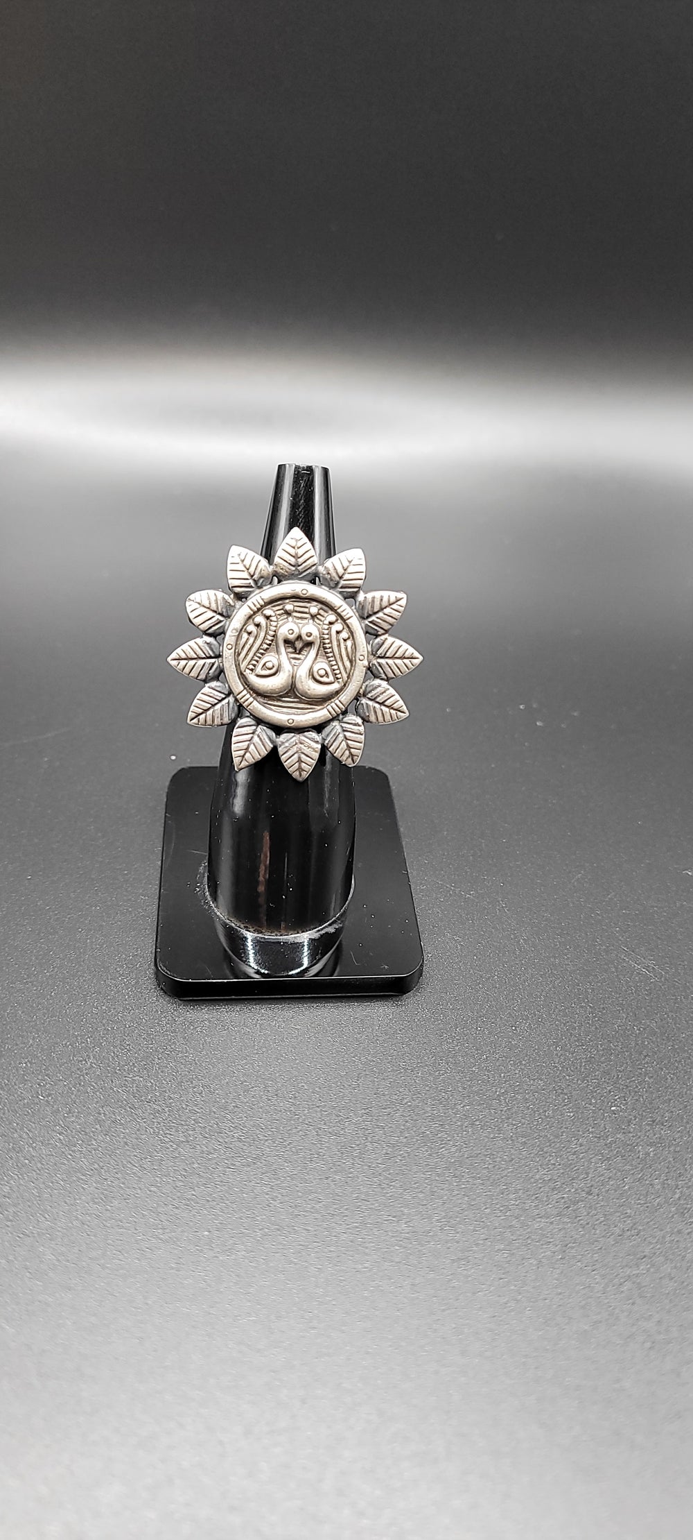 Elegant Statement Silver Adjustable Medium round leaves outlined designed ring