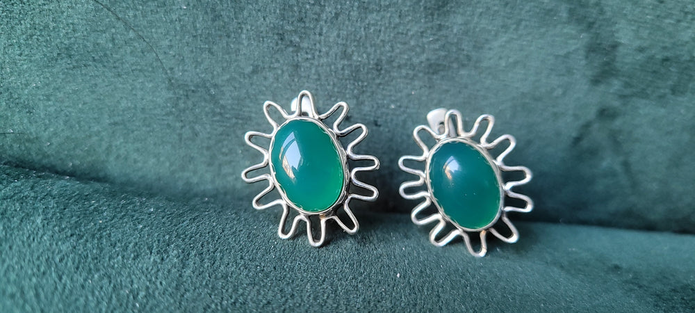 Elegant Statement Silver Green Stone Studs designer earrings
