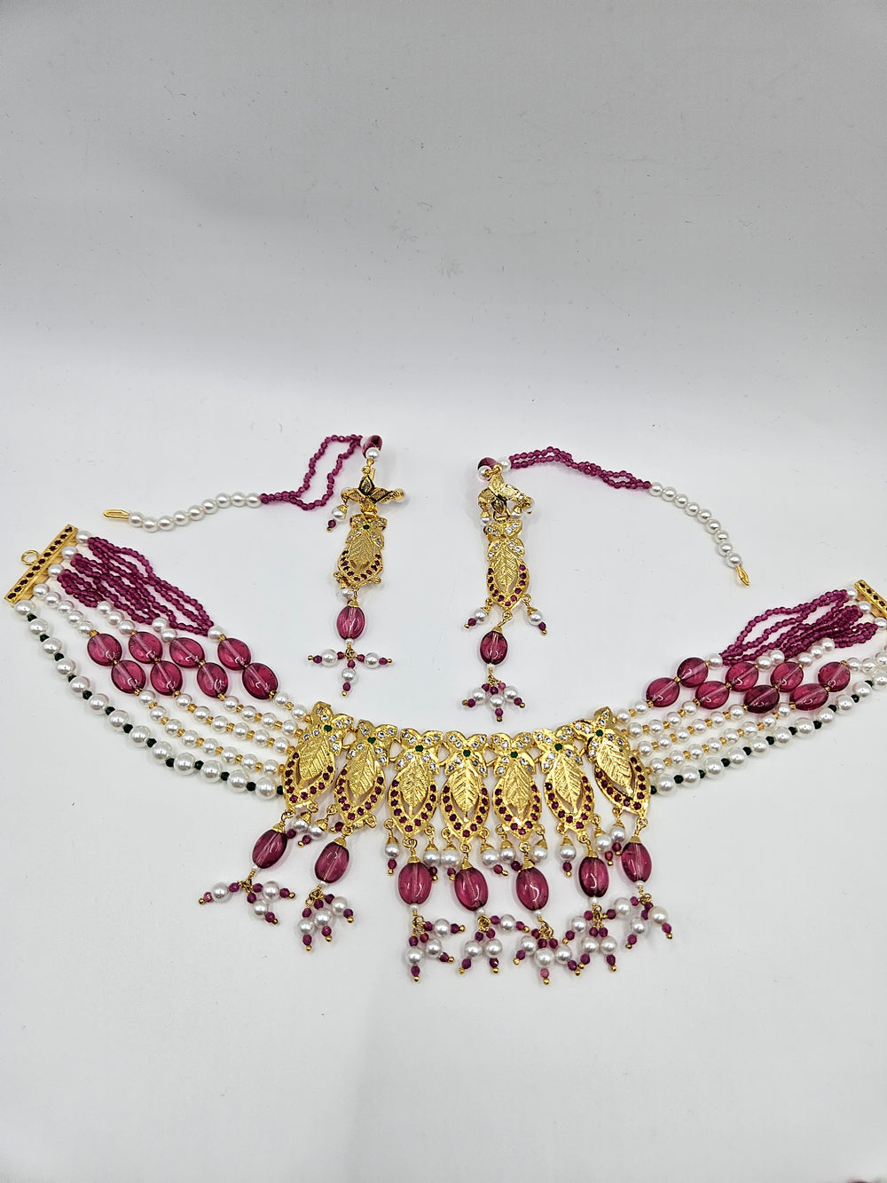 Unleash the Gold plated Sterling Silver designs & Semi precious stones gives a graceful look to neck piece. The tradition of jadau reflects the trend forever for generations