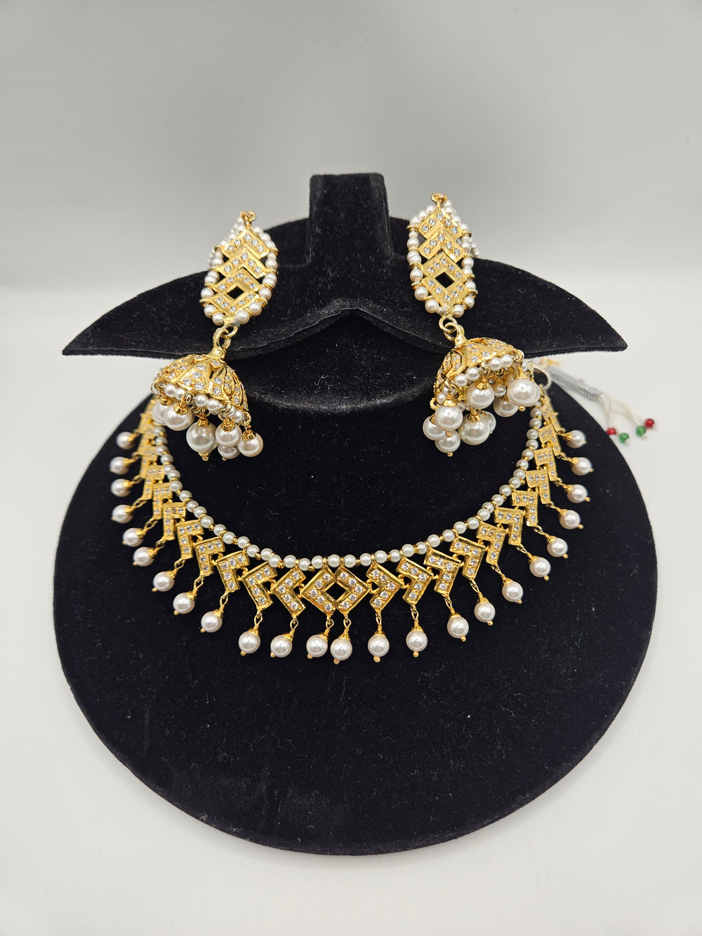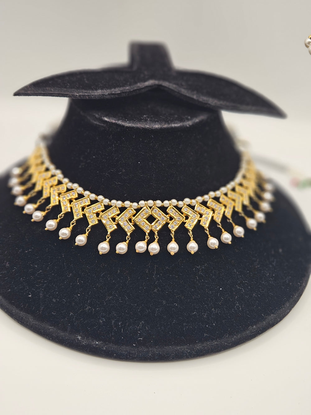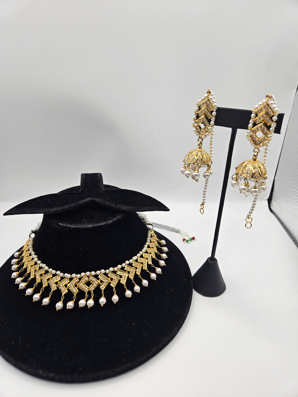 Unleash the Gold plated Sterling Silver designs & Semi precious stones gives a graceful look to neck piece. The tradition of jadau reflects the trend forever for generations