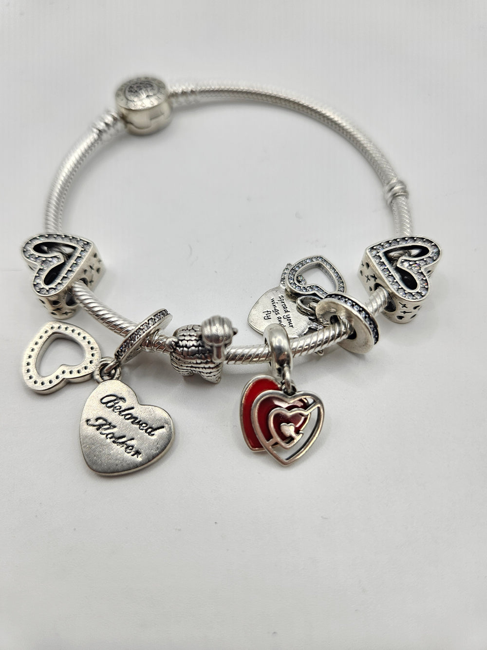 Silver Designer Pandora Charms & hangings zircons diamonds Bracelet.