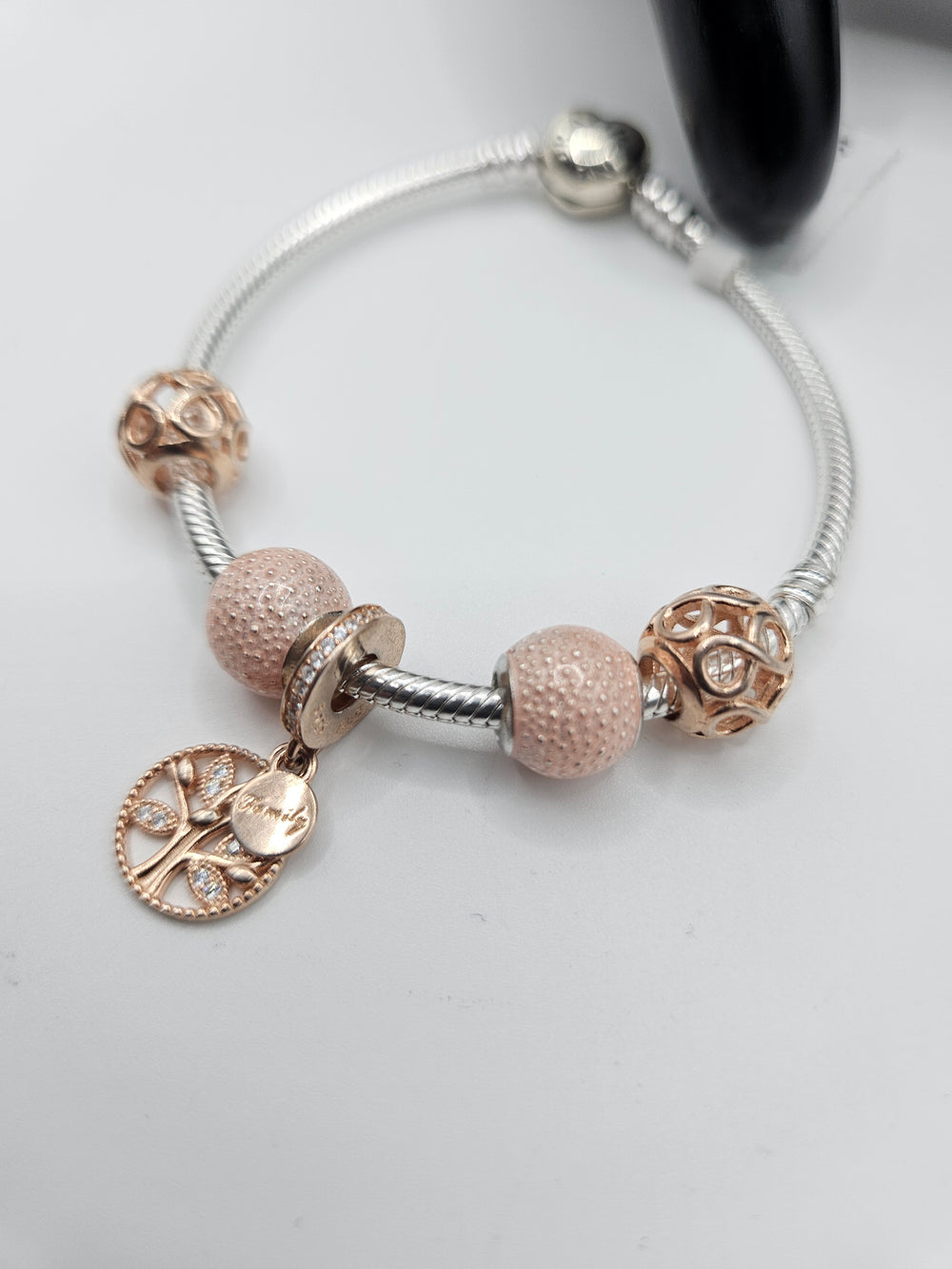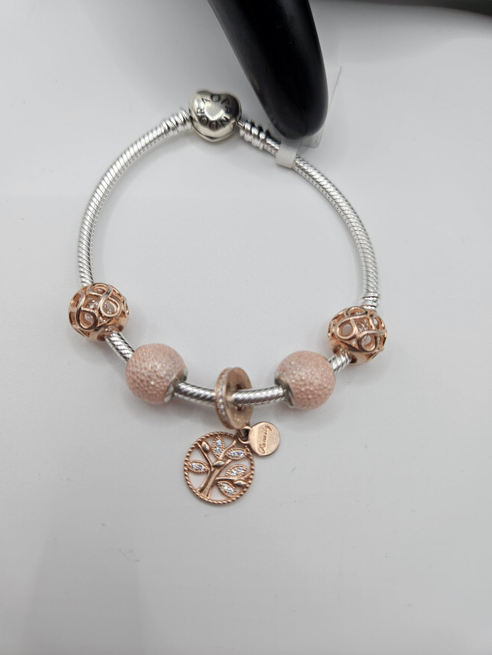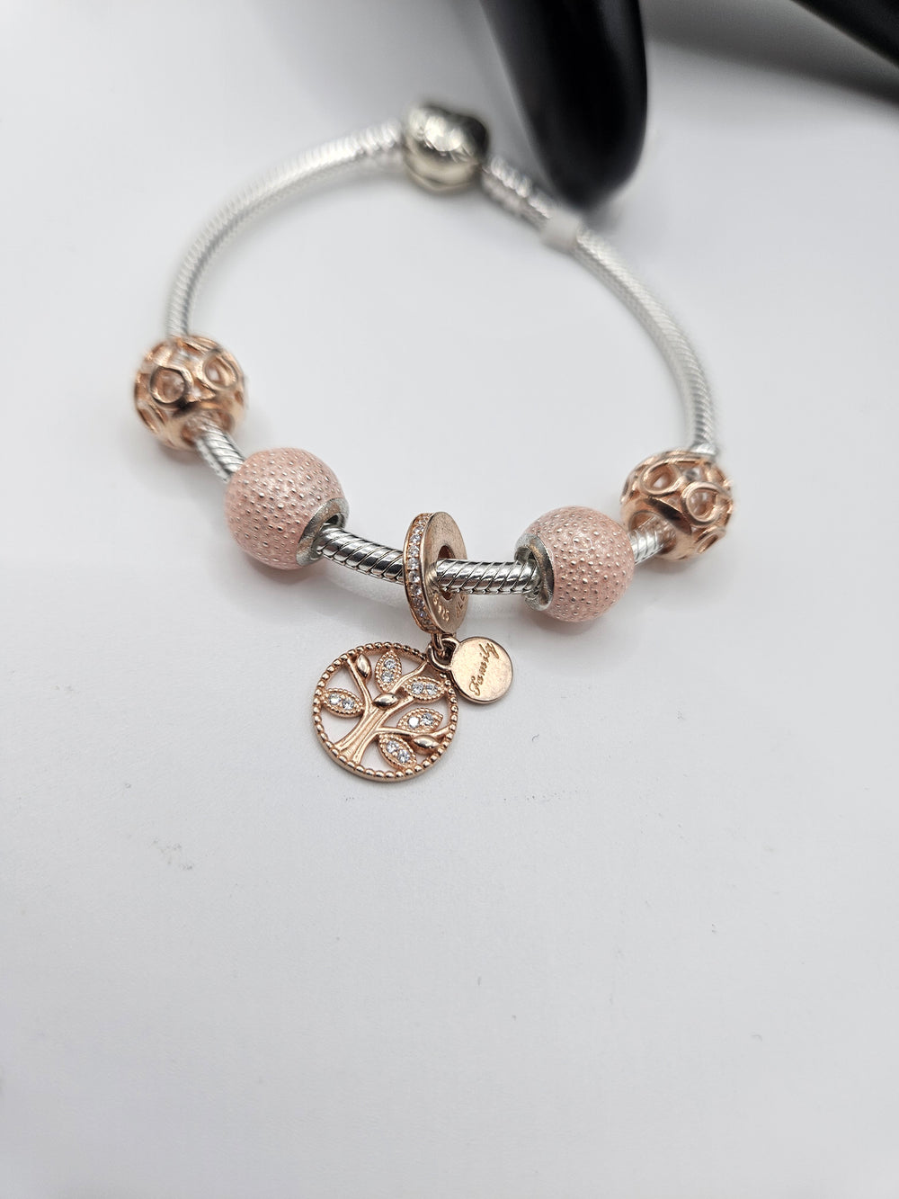 Silver Designer Pandora Rosegold Charms & hangings zircons diamonds Bracelet.
