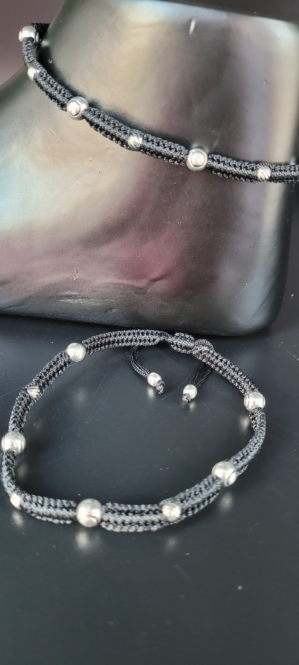 Designer 925 silver beads and black thread single anklet beautify the feet