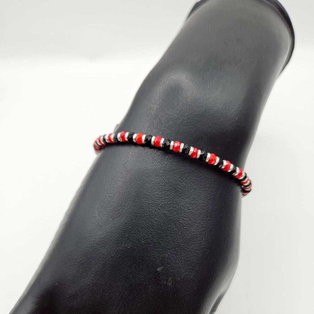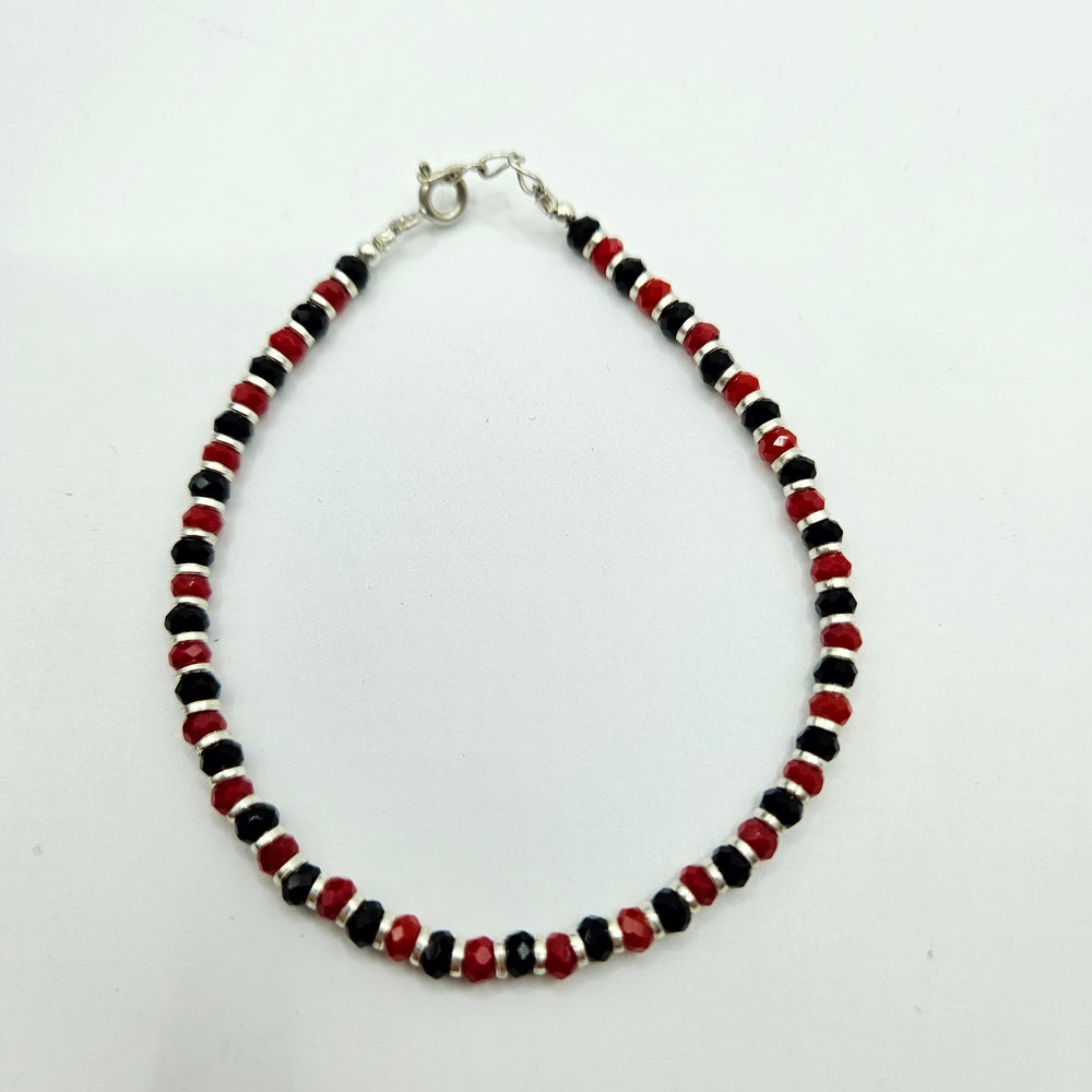 925 Silver Designer Red & Black Beads Bracelet