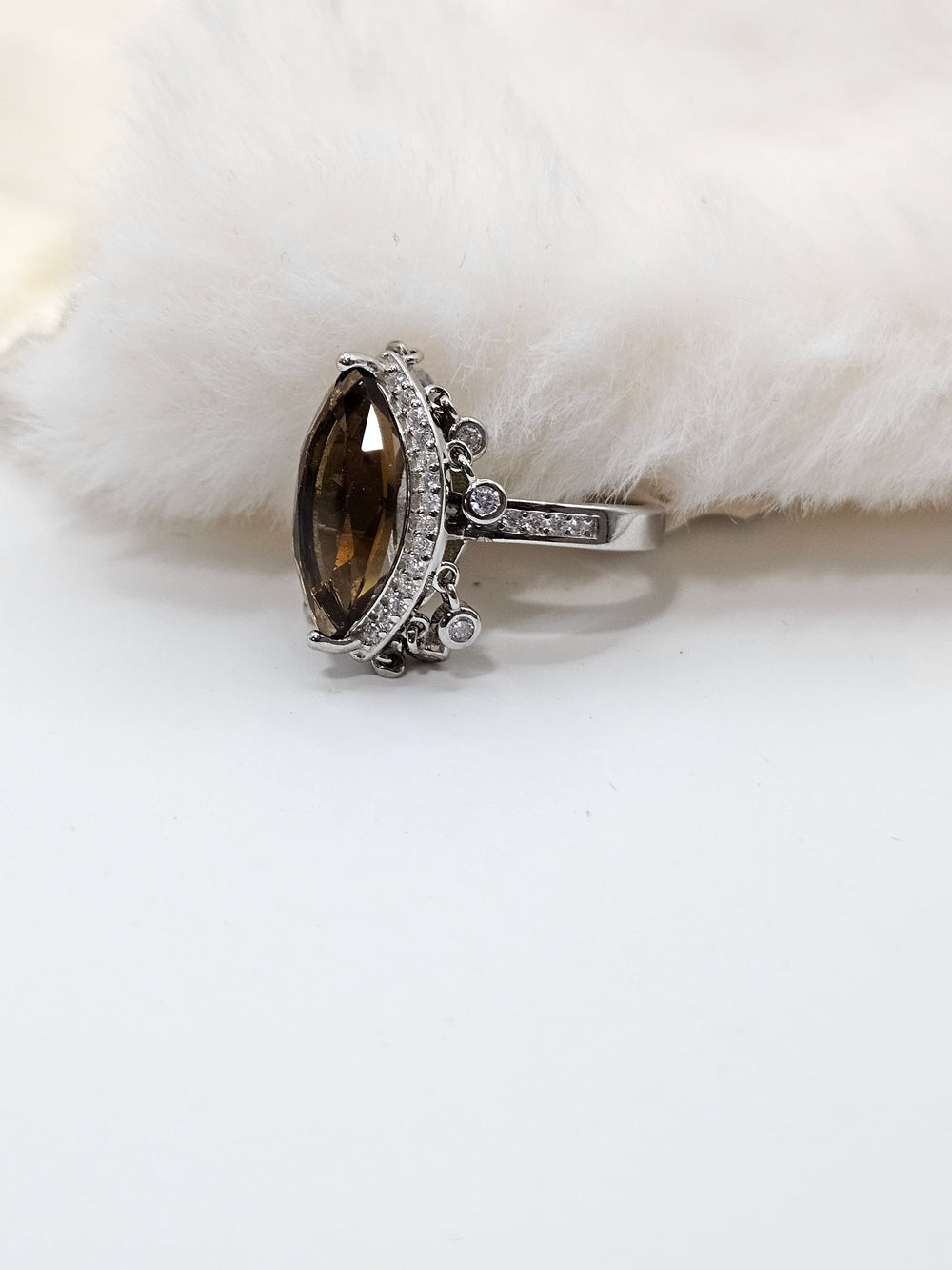 Elegant Solid 925 Sterling Silver ring is adorned with Cubic Zirconia stones with hanging beats and finished with a platinum plating for a luxurious shine. Crafted from the finest materials, and last a lifetime.