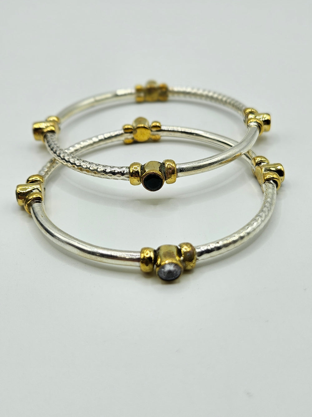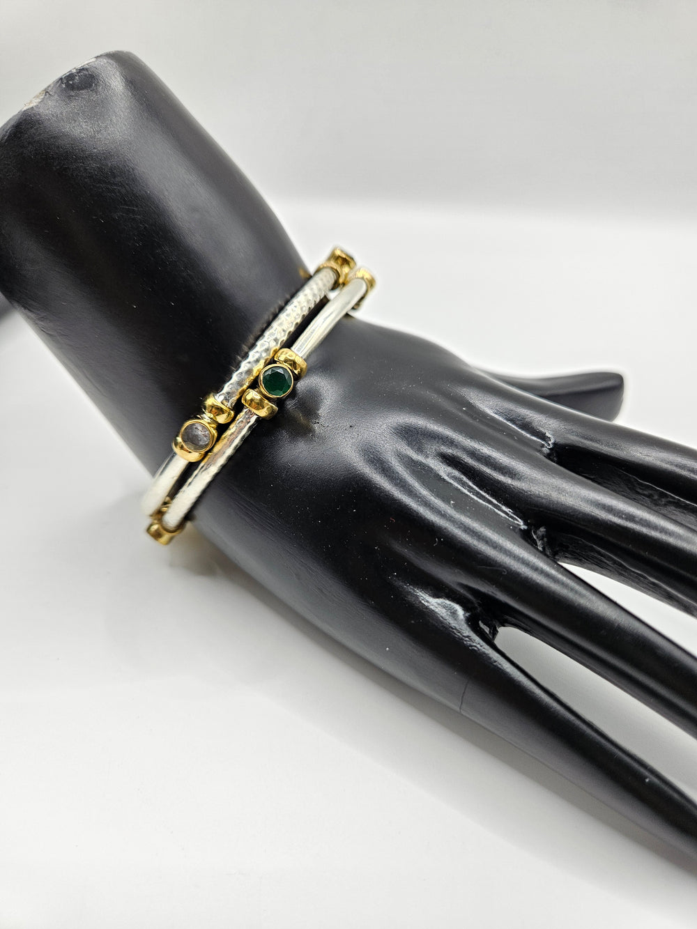 Elegant Statement Oxidized silver 2 bangles in pair with Semi precious Ruby, emerald ,Cubic zircon Stones