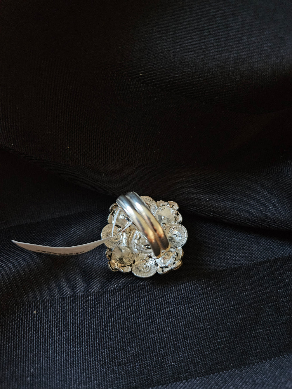Elegant Statement Silver Adjustable Medium Green stone ring gives elegant looks to its own.